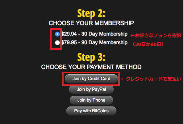 クレジットカード、PayPal、電話、ビットコインでの支払い方法を選択できます。